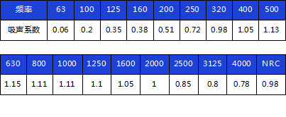 吸聲頻帶寬、低頻吸聲效果更佳;在100~5000HZ內(nèi)平均吸聲系數(shù)0.84以上;降噪系數(shù)NRC達(dá)到0.98。