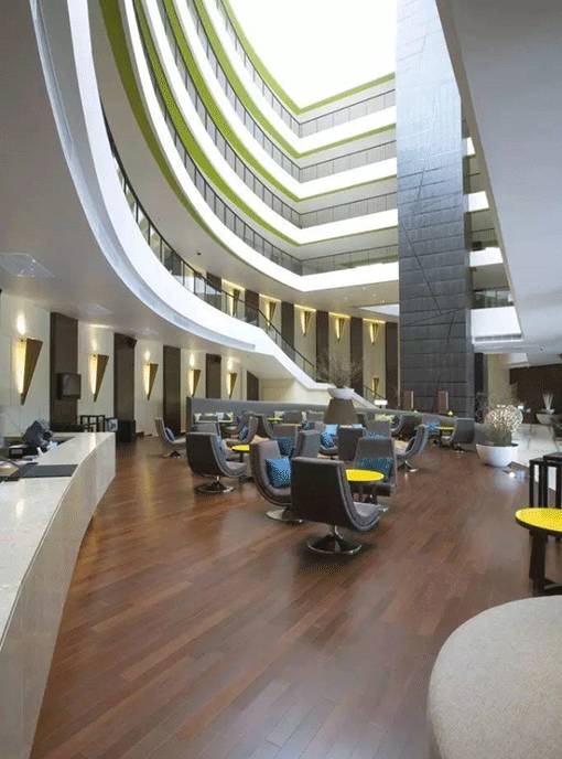 大廳空間要求寬敞明亮、色彩怡人,應保持充足的采光照明,并盡可能利用自然光,在大廳內引進綠色植物,并通過通透的外墻借室外園林景色,營造出讓病人可充分放松和消除緊張的感覺,指示標識應醒目,線路清晰易找,導醫(yī)、問詢安排在接近入口的合適位置,做到既不影響交通又使問詢方便。大廳應保持良好的空氣質量,對于全空調的大廳,裝修不得影響空調的氣流組織,墻、頂造型均應與空調消防等專業(yè)密切配合。
